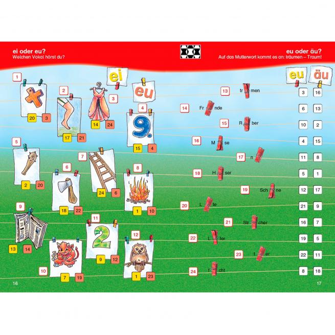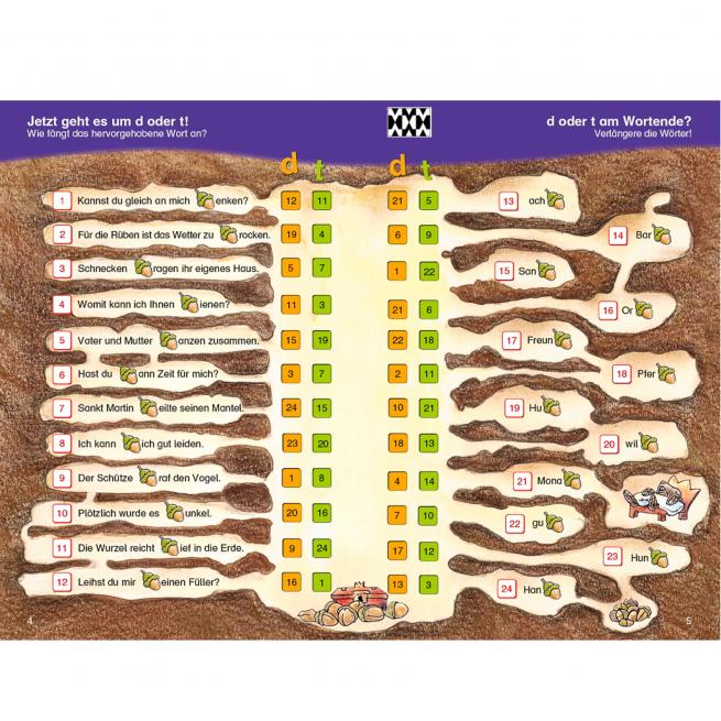 Intensive und vielfältige Übungen zur Vermeidung der häufigsten Rechtschreibfehler. Vielfach müssen die Kinder sehr genau in die Wörter hineinhören, um den richtigen Buchstaben oder die Trennung zu erkennen und zu schreiben: