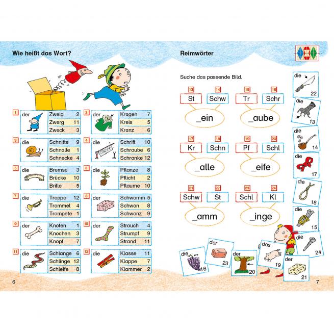 Motivierende Leseaufgaben ab Klasse 1, die auch zahlreiche lesetechnisch schwierige Wörter mit Konsonantenhäufungen (z.B. Kranz, Pflaume, Strumpf) und mehreren Silben enthalten. Nach dem Abschluss des Leselehrgangs können die Kinder diese Wörter selbstständig und spielerisch an der LÜK-Station üben. Dabei werden Silben bzw. Wortteile zu Wörtern zusammengefügt sowie Wörter und einfache Sätze sinnerfassend gelesen. Die Lösung erfolgt durch Zuordnung von Bildern, Wörtern, Sätzen oder Satzteilen.