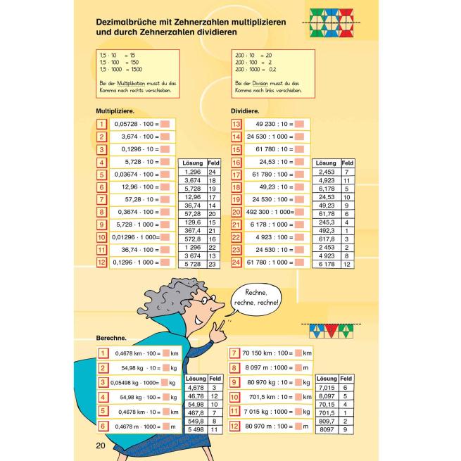 Das Heft fördert das systematische Üben und Vertiefen von Rechenregeln durch überwiegend im Kopf zu rechnende Aufgaben, wobei der Fokus auf Teilbarkeit, Brüchen, Dezimalbrüchen und Größen liegt. Mit unterschiedlichen Schwierigkeitsgraden, Merkkästen, Beispielen und dem LÜK-Kontrollsystem bietet es eine motivierende und flexible Möglichkeit, ein solides mathematisches Grundwissen gemäß den aktuellen Lehrplänen aufzubauen.