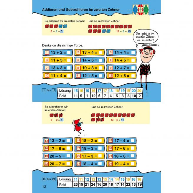 Ausgerichtet an den aktuellen Lehrplänen kann der Lernstoff des ersten Schuljahres mit diesem Mathekurs in Freiarbeit, Wochenplänen, beim Lernen an Stationen, im Förderunterricht oder bei zusätzlichen Übungen zu Hause spielerisch und selbstkontrolliert geübt werden. Mit neueren Aufgabenformen wie Zahlenmauern, Rechentafeln und Rechendreiecken werden aktuelle didaktisch-methodische Erkenntnisse berücksichtigt. Die inhaltliche Vielfalt mit Ergänzungsaufgaben, Umkehr- und Tauschaufgaben sowie Rechnen mit Geld, Schüttelboxen oder am Zahlenstrahl im Zahlenraum bis 20 motiviert die Kinder, eigenverantwortlich mit Freude zu üben.