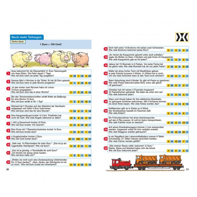 Sachaufgaben aus dem Lebensumfeld der Schüler. Die Übungen fördern das Entdecken von Lösungsstrategien und helfen bei der rechnerischen Bewältigung von Sachaufgaben.