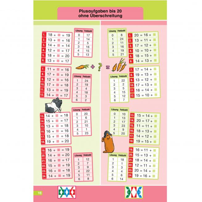 Ausgerichtet an den aktuellen Lehrplänen kann der Lernstoff des ersten Schuljahres mit diesem Mathekurs in Freiarbeit, Wochenplänen, beim Lernen an Stationen, im Förderunterricht oder bei zusätzlichen Übungen zu Hause spielerisch und selbstkontrolliert geübt werden. Mit neueren Aufgabenformen wie Zahlenmauern, Rechentafeln und Rechendreiecken werden aktuelle didaktisch-methodische Erkenntnisse berücksichtigt. Die inhaltliche Vielfalt mit Ergänzungsaufgaben, Umkehr- und Tauschaufgaben sowie Rechnen mit Geld, Schüttelboxen oder am Zahlenstrahl im Zahlenraum bis 20 motiviert die Kinder, eigenverantwortlich mit Freude zu üben.