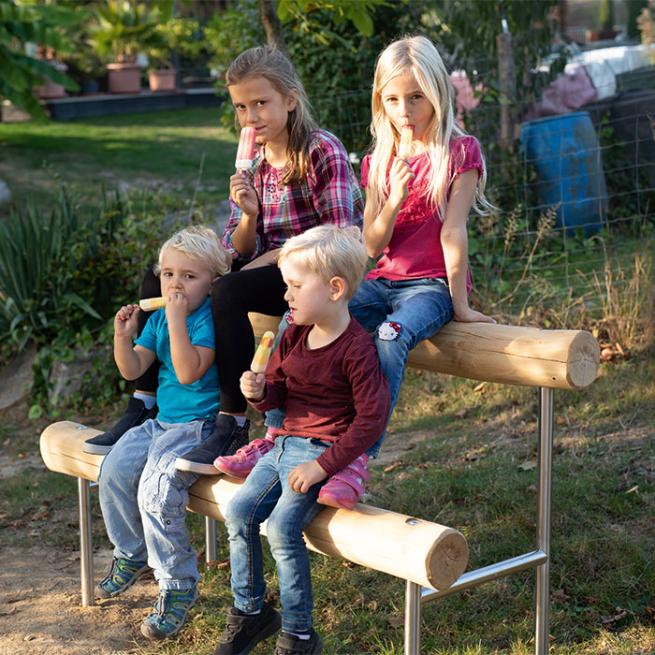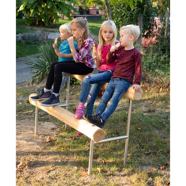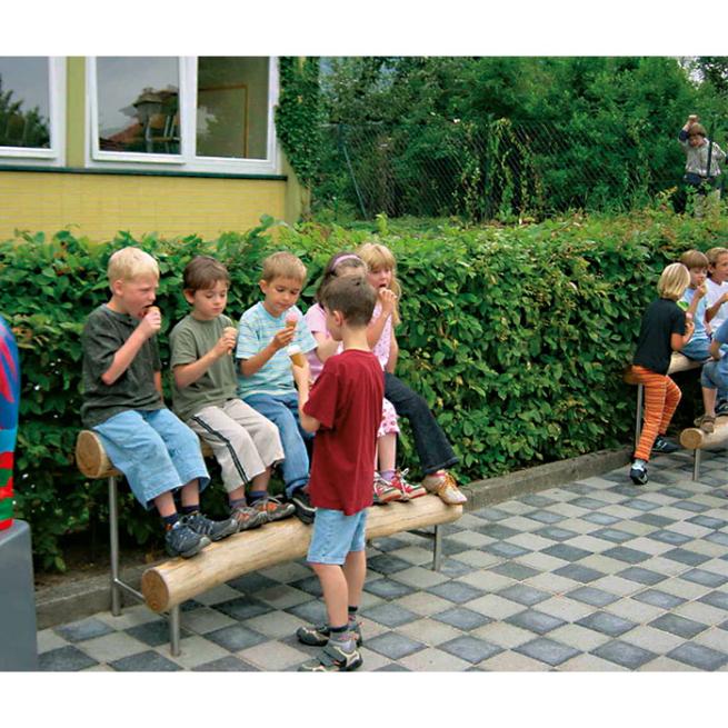 Hier dürfen Ihre Schüler endlich ein mal auf der Lehne sitzen. Die einfache wie geniale Sitzgelegenheit besteht aus 2 Robinien-Stämmen auf einem Stahlgestell. Die Bank ist äußerst stabil und langlebig. Das Gestell wird zum sicheren Stand ca. 50 cm in den Boden einbetoniert. Sie erhalten die Lümmelbank komplett zusammengebaut.