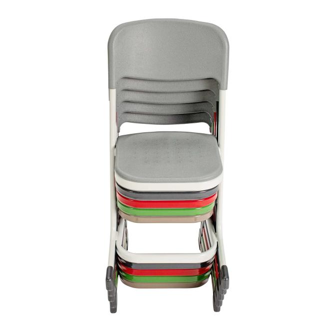 Die Stühle sind stapelbar und feucht abwischbar.