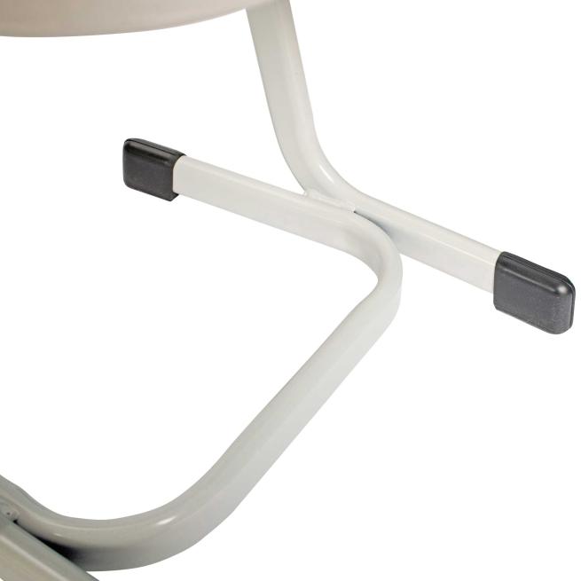 Sitz und Rücken sind körpergerecht geformt. Die Farbe der Luftpolster ist hellgrau. Das Stuhlgestell ist komplett verschweißt, einbrennlackiert und pulverbeschichtet. Somit weitestgehend resistent gegen Stöße. Mit langlebigen Fußgleitern.