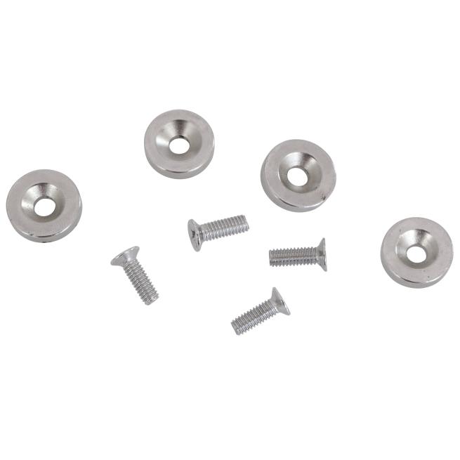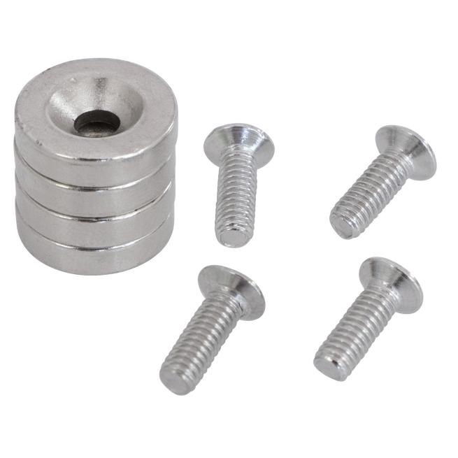 Mit den vier Magneten haften Sie die Lautstärken-Ampel an jede Metalloberfläche. Die Magnete schrauben Sie einfach und sicher ein.