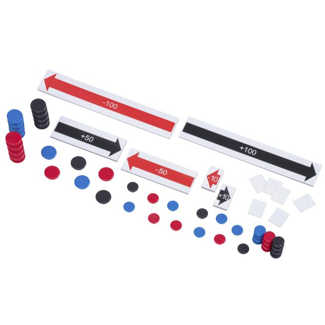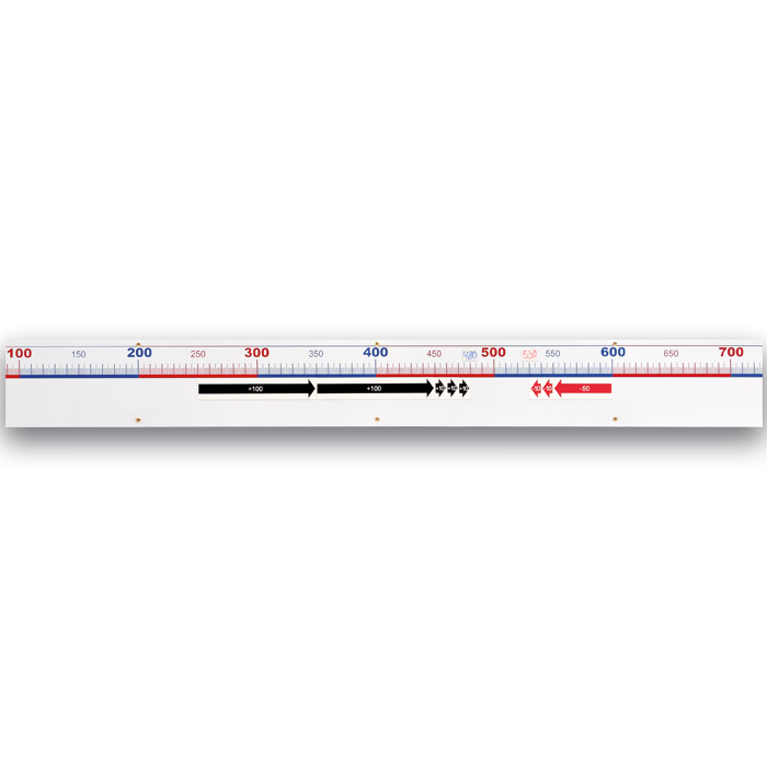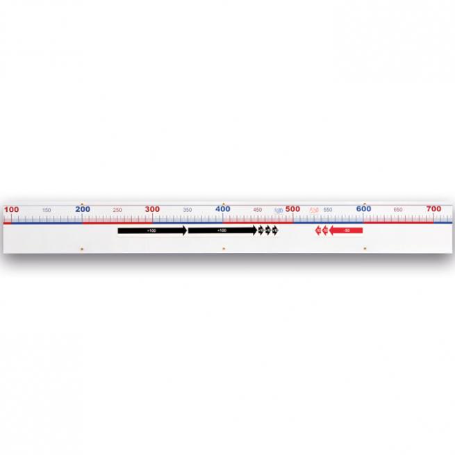 Das 3 m lange Band aus Eisenfolie zeigt für jede Zahl einen Strich. 5er, 10er und 100er Abgrenzungen sind hervorgehoben. Mit dem reichhaltigen Zubehör visualisieren Sie Rechenoperationen. Die Rechenpfeile sind beidseitig bedruckt und zeigen + und - Werte.