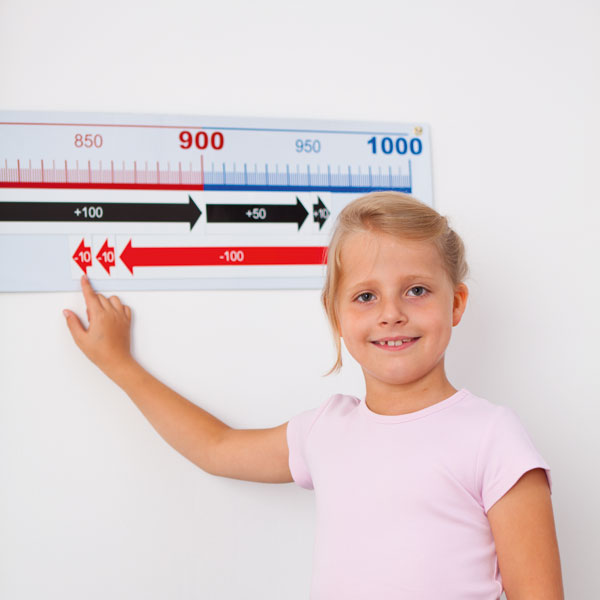 Ihre Schüler sehen und verstehen den 1.000er-Raum und automatisieren Rechenaufgaben wie +100 oder -10. Die Magnete und Symbolkärtchen dienen zur Markierung. Den Zahlenstrahl beschriften Sie auch mit trocken abwischbaren Filzmarkern. Mit 12 Ösen zur sicheren Wandbefestigung. Schrauben und Dübel zur Befestigung liegen bei.