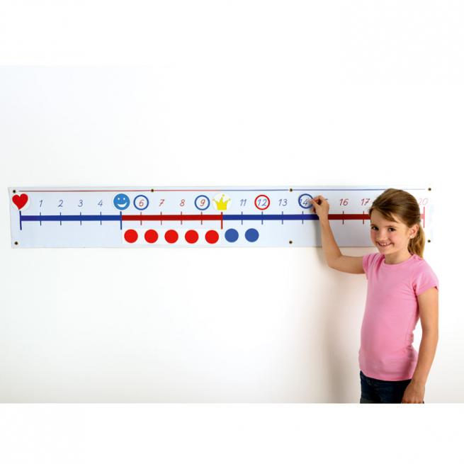 An der Wand des Klassenraumes ist der 20er-Zahlenstrahl immer präsent. Ein großer Vorteil: Ihre Wandtafel bleibt frei für Rechenaufgaben und andere Inhalte. Insbesondere Schulanfängern helfen Sie durch die permanente Präsenz, sich im Zahlenraum 20 zu orientieren. Die perfekte Unterrichtshilfe für das ganze 1. Schuljahr.