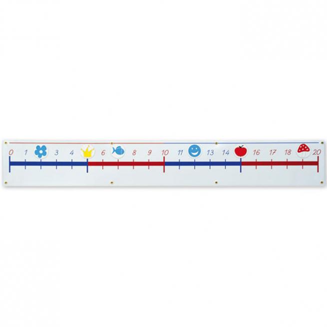 20er-Zahlenstrahl aus Eisenfolie, L x B: 165 x 21 cm, mit 8 Ösen zur Wandbefestigung