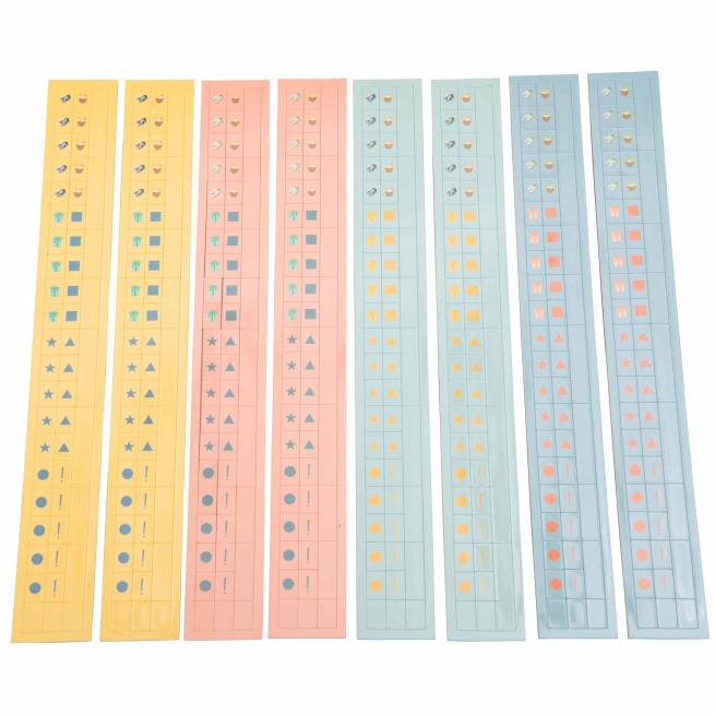 80 Symbole, 1,5 x 1 cm (je 10 Quadrate, Dreiecke, Ausrufezeichen, Sterne, Kreise, Geschenke, Turnschuhe, Urlaub)