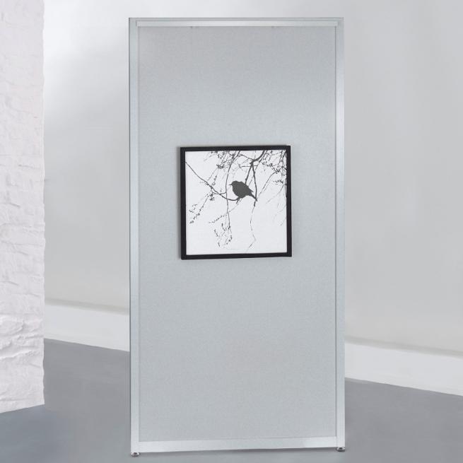Sie erhalten die Ausstellungswand mit einer Füllplatte aus magnetischem Stahlblech und einem einfassenden Aluminiumrahmen. Die Wand besitzt beidseitig eine Aluminiumschiene (Galerieleiste) samt Hängevorrichtung aus fast unsichtbaren Nylonschnüren, dank der Sie Kunstwerke und andere passende Ausstellungsobjekte bis zu einem Gewicht von 10 kg sicher befestigen und überzeugend präsentieren. Alternativ befestigen Sie geeignete Objekte, wie Planmaterial oder Zeichnungen, auch mithilfe von Magneten (nicht im Lieferumfang enthalten).