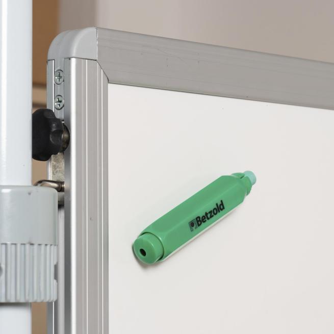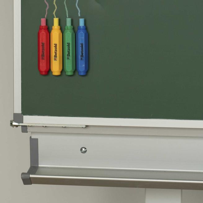 Die 4 magnetischen Kreidehalter in Blau, Gelb, Grün und Rot bieten Ihnen und Ihren Schülerinnen und Schülern mehr Komfort beim Schreiben an der Tafel. Für runde Kreidestücke mit einem Durchmesser von 8 bis 11 cm. Die Halter schützen Hände und Kleidung vor Kreidestaub, liegen gut in der Hand und unterstützen beim gleichmäßigen Schreiben. Zudem sind sie für Rechts- und Linkshänder geeignet. Setzen Sie das runde Kreidestück einfach in die stabile Kunststoff-Spannzange ein – schon sitzt es sicher und fest. Die magnetischen Kreidehalter haften platzsparend an der Tafel – immer griffbereit für den nächsten Einsatz.
