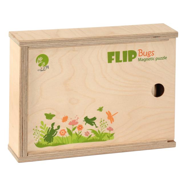 Kinder ab 3 Jahren setzen die Insekten zusammen, indem sie die magnetischen Puzzleteile passend übereinanderlegen. So entstehen Figuren mit leichtem 3D-Effekt. Die farbenfrohen Puzzleteile aus Birkensperrholz sind super zu greifen. Zum Schluss sortieren die Kids alles wieder in die passenden Eintiefungen der Holztableaus. Lieferung in kompakter Holzbox mit Schiebedeckel.