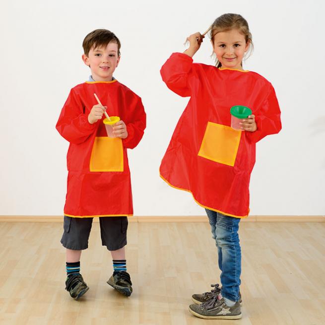 Schütze kleine Künstler und Künstlerinnen stilvoll – mit den wasserabweisenden Malkittel aus robustem Nylon. Dank praktischem Klettverschluss am Hals ziehen Kinder ihn ganz allein an und an dem integrierten Aufhänger kann er sofort verstaut werden. Mit langen Ärmeln und Bündchen sowie einer aufgenähten Vordertasche für Pinsel & Co. bleibt Kleidung sauber und ordentlich. Ideal für kreative Einsätze drinnen und draußen, waschbar bei 30 °C – der perfekte Begleiter für Kunststunden im Kindergarten oder Grundschule.