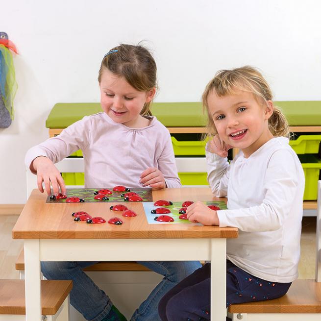 Mit den Marienkäfer-Zählsteinen den Zahlenraum bis 10 erkunden und Sortieren sowie Zählen trainieren. Alsbald üben die Kinder sogar erste kleine Aufgaben zum Addieren und Subtrahieren ein. Dank robuster Stein-Harz-Mischung auch für draußen geeignet.