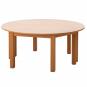 Hier ist alles aus massiver Buche. Sowohl die 18 mm starke Tischplatte als auch die mit 5,8 cm Stärke extra-breiten Tischbeine. Damit sind diese Tisch sehr standfest und bleiben an dem vorgesehenen Platz stehen.