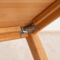 Hier ist alles aus massiver Buche. Sowohl die 18 mm starke Tischplatte als auch die mit 5,8 cm Stärke extra-breiten Tischbeine. Damit sind diese Tisch sehr standfest und bleiben an dem vorgesehenen Platz stehen.