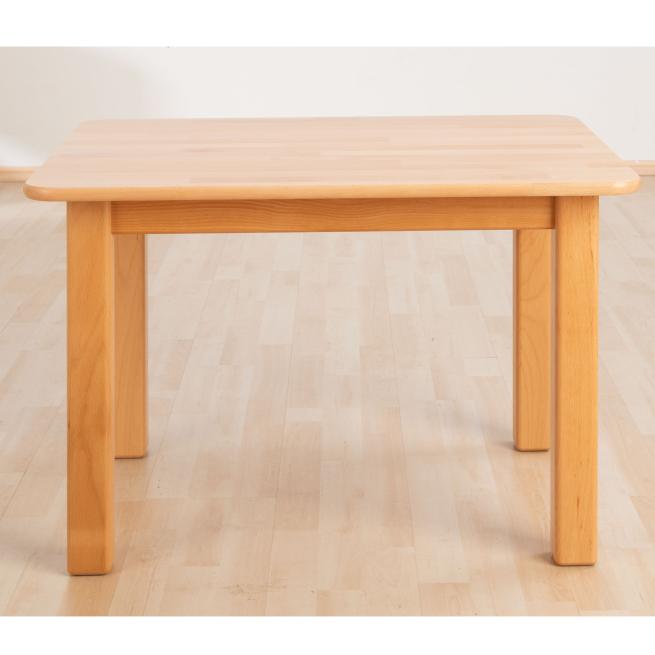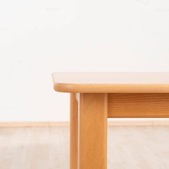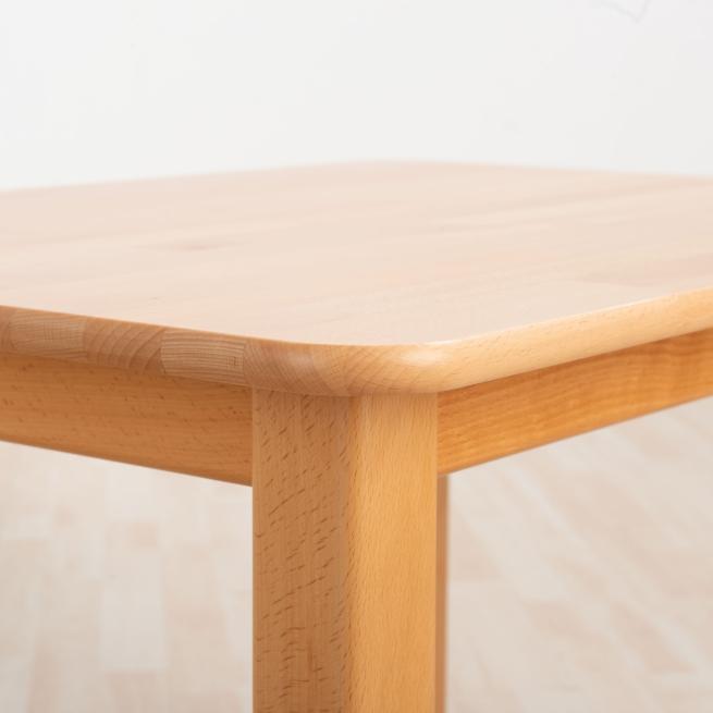 Hier ist alles aus massiver Buche. Sowohl die 18 mm starke Tischplatte als auch die mit 5,8 cm Stärke extra-breiten Tischbeine. Damit sind diese Tisch sehr standfest und bleiben an dem vorgesehenen Platz stehen.