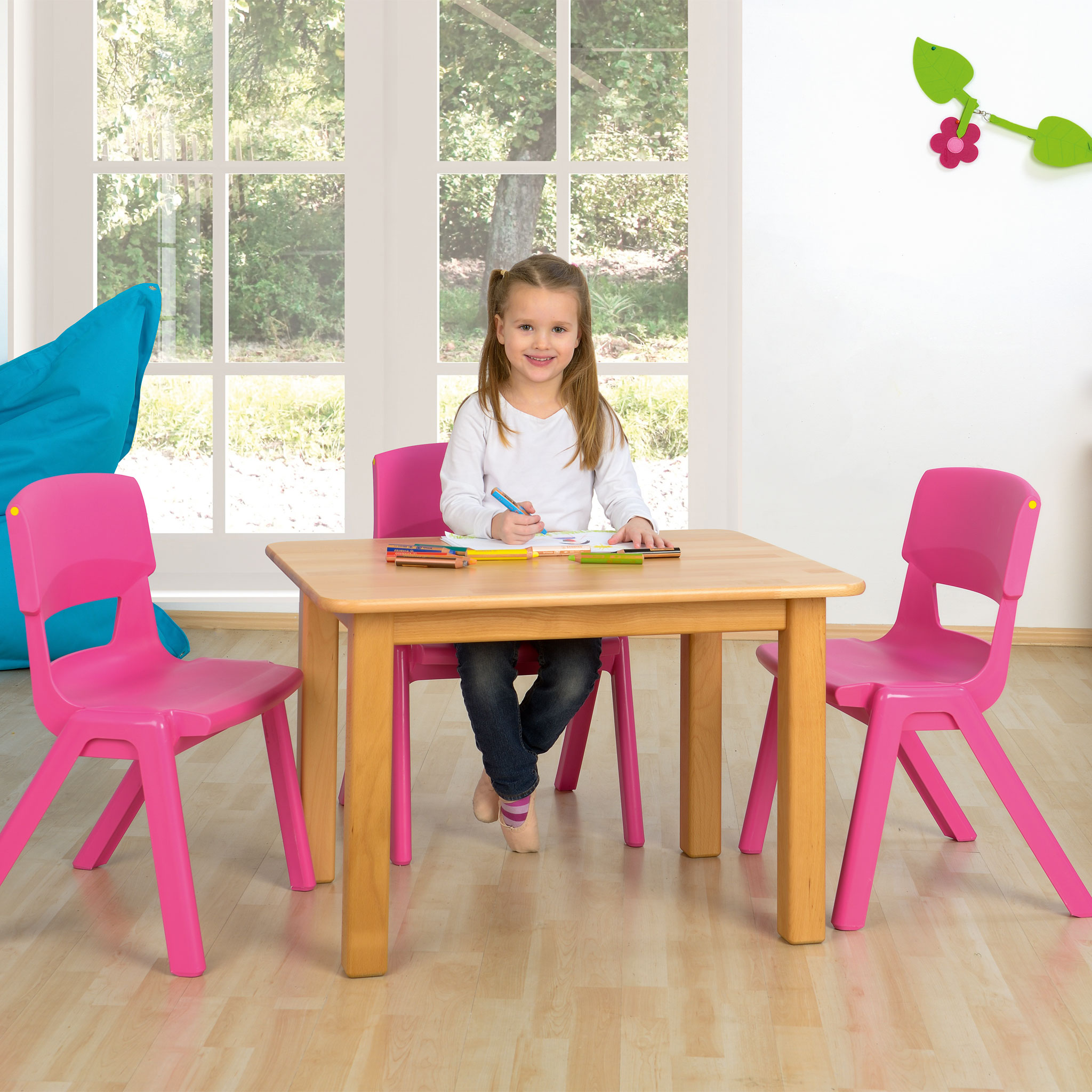 Die Tischplatten haben einen für Massivholz typischen Charakter. Sie sind sehr robust und widerstandsfähig. Platten und Beine sind seidenmatt geölt. Die Tische können mit einem leicht feuchten Tuch abgewischt werden.