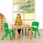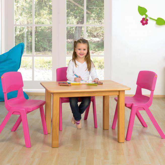 Hier ist alles aus massiver Buche. Sowohl die 18 mm starke Tischplatte als auch die mit 5,8 cm Stärke extrabreiten Tischbeine. Damit sind diese Tisch sehr standfest und bleiben an dem vorgesehenen Platz stehen.