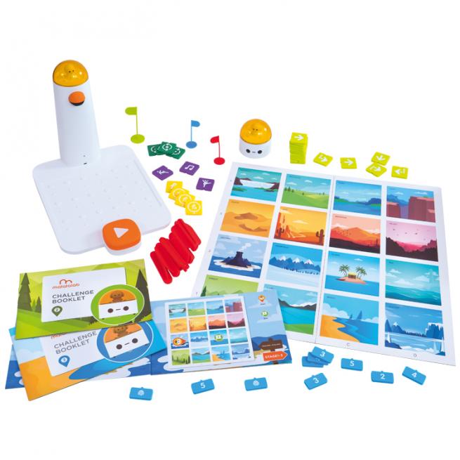 Die Kinder lernen so die Grundlagen der Programmierung, entwickeln grundlegende Coding-Fähigkeiten und die notwendigen, kognitiven Eigenschaften, um abstrakte und komplexe Verkettungen zu begreifen. Mithilfe der beiliegenden Matte, Hindernisse und Fähnchen lernen die Kinder spielerisch algorithmische Zusammenhänge und räumliches Vorstellungsvermögen, denn darauf beschreitet der Roboter seinen zuvor programmierten Weg.