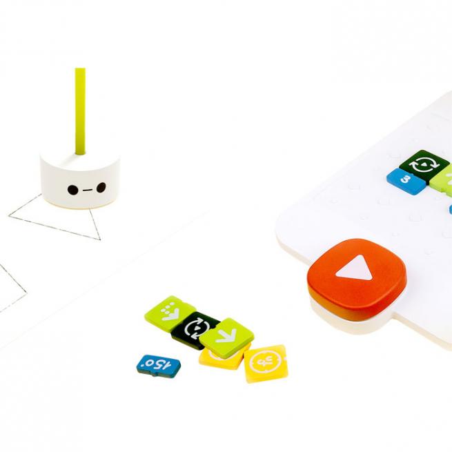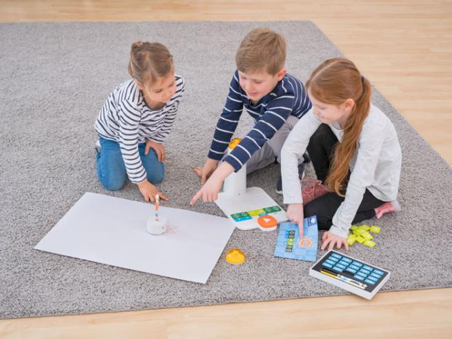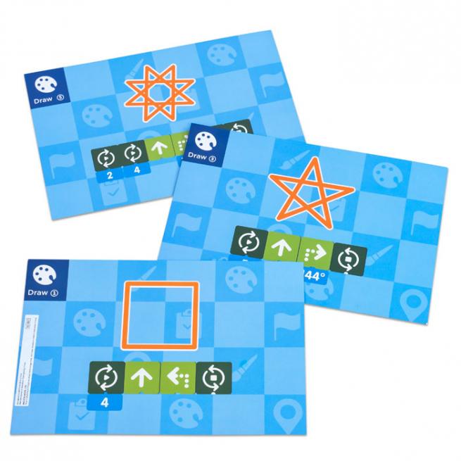 Ihr Verständnis für Kunst & Geometrie programmieren Vor- und Grundschulkinder von 4 bis 9 Jahren ab jetzt mit diesem Erweiterungs-Set für das MatataLab Coding-Set ganz einfach. In den Roboter setzen die Kinder einen der drei beiliegenden Stifte. Mithilfe der Winkel-Programmiersteine zeichnet der Roboter dann die von ihnen programmierten Formen wie Sterne, Dreiecke und andere Formen aufs Papier. So entstehen großartige Kunstwerke. Sechs Beispiele auf 3 Karten sind inbegriffen.
