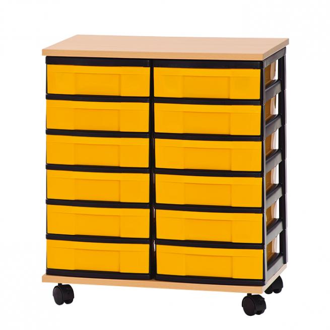 Materialschrank - 12 flache Boxen, 2-reihig