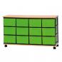 Wählen Sie aus unserem Boxensystem die für Ihre Einrichtung optimale Zusammenstellung. Die Schränke sind stabil und bieten jede Menge Platz. Die Schubladen haben eine Auszugssperre, damit sie nur bis zum sicheren Haltepunkt herausgezogen werden. Schnell und einfach nehmen Sie die Boxen auf Wunsch auch komplett aus der Führung. Zum Beispiel, wenn Sie einer Gruppe den kompletten Inhalt der Box zur Verfügung stellen wollen. Boxen aus Kunststoff, Schrankboden und -deckel aus Holz, melaminbeschichtet.
