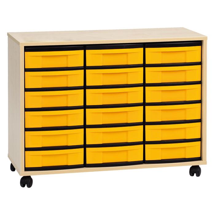 Vielseitig in verschiedenen Höhen und mit flachen Boxen. Die Schränke mit Rollen lassen sich arretieren. Wählen Sie zwischen 11 Dekor-Varianten und 6 Farben der Boxen. Der Korpus ist melaminbeschichtet und sehr widerstandsfähig.