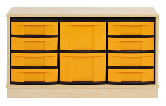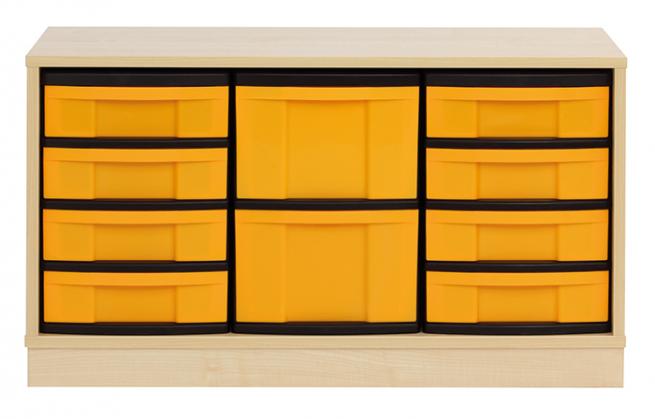 Vielseitig in verschiedenen Höhen und mit hohen und flachen Boxen. Die Schränke mit Rollen lassen sich arretieren. Wählen Sie zwischen 12 Dekor-Varianten und 6 Farben der Boxen. Der Korpus ist melaminbeschichtet und sehr widerstandsfähig. Wahlweise erhalten Sie diese Schränke mit Rollen, stabilen Standfüßen oder Sockel.