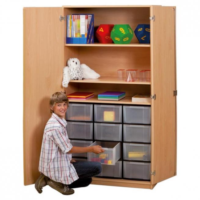 Materialschrank - mit Drehtüren, 12 hohe Boxen