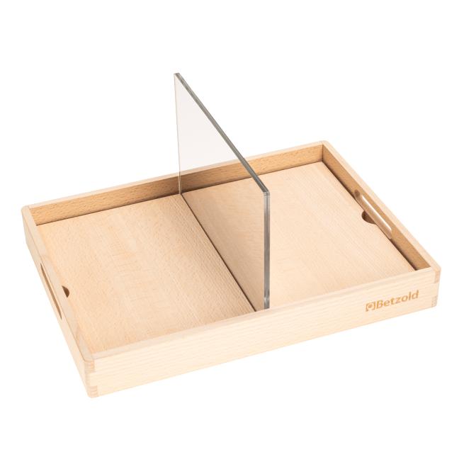 4. Lade: Spiegel in verschiedenen Größen samt genuteter Holzteile zum Fixieren der Spiegel