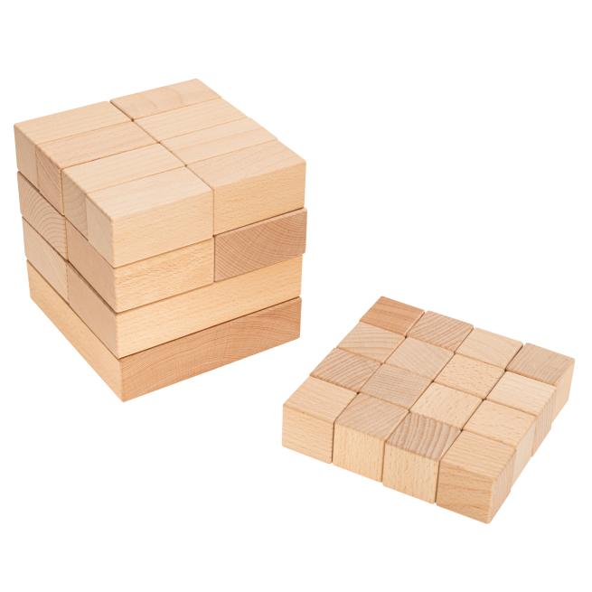 • Vermittlung mathematisch-geometrischer Grundlagen, wie Zahlzerlegungen, geometrischer Körper und ihrer Teilungen (Rauminhalte), Zuordnung von Formen und Größen, Deckungsgleichheit, Symmetrie und Schattendarstellungen