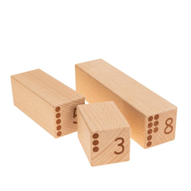 3. Lade: Zahlenbausteine aus Holz (zur Darstellung von Zahlen, Mengen und ihrer Zerlegung)