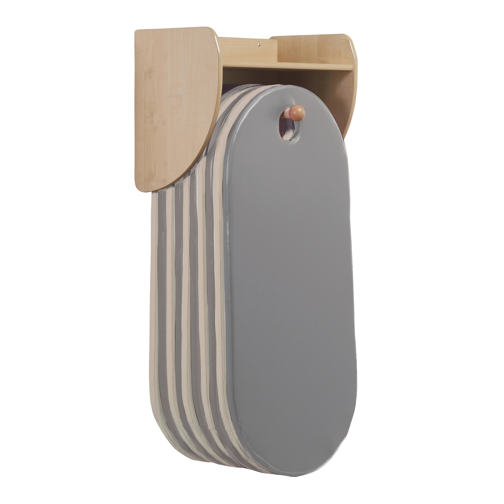Eine platzsparende Lösung für Ihren Schlafraum bietet diese Wandaufbewahrung für die 10 abgerundeten Schlafmatten. Im Wandregal mit oberer Ablage hängen Sie die Matten einfach an die Stange und haben Sie so stets griffbereit. Der hochdichte Schaumstoffkern macht die Matten besonders komfortabel und formstabil. Enthalten sind 5 cremefarbene und 5 graue Matten (H x B x T: 5 x 55 x 120 cm).