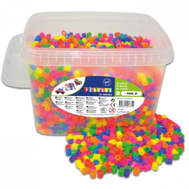 Sie erhalten 5.000 Maxi-Bügelperlen im praktischen Eimer. So haben Sie immer Nachschub für noch mehr Bügelperlen-Spaß.