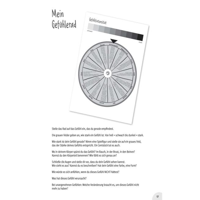 Schwarz-Weiß-Illustrationen, mit Gefühle-Bestimmungsrad, Ausmalbildern und Figuren zum Ausschneiden