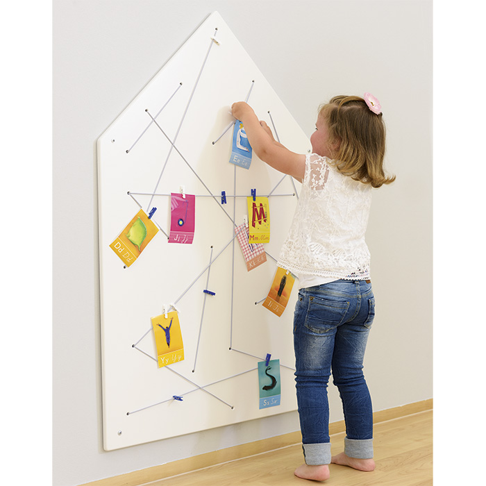 Memoboard Haus mit Gummibändern. Inklusive Wandmontagematerial und 8 Meter Gummiband.
