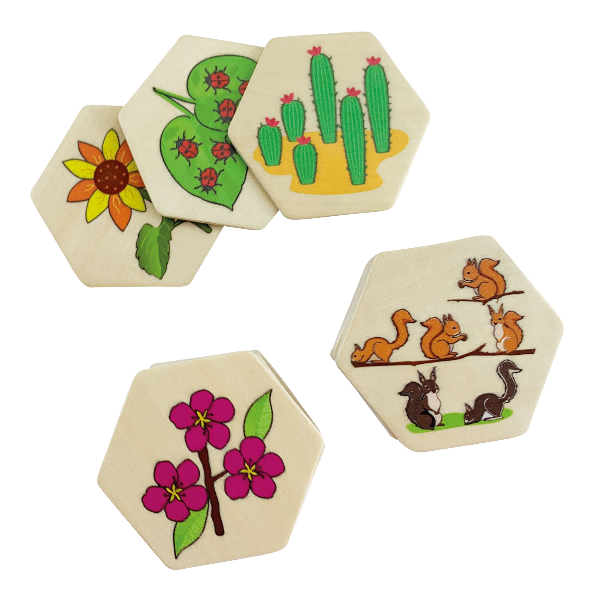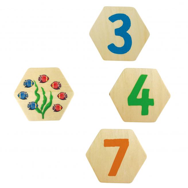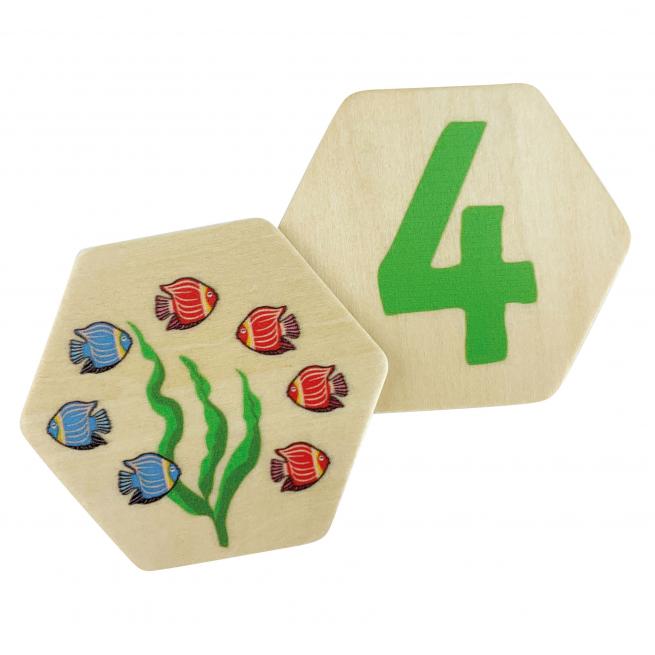 10 Holzkarten mit Zahlen20 Holzkarten mit Motiven