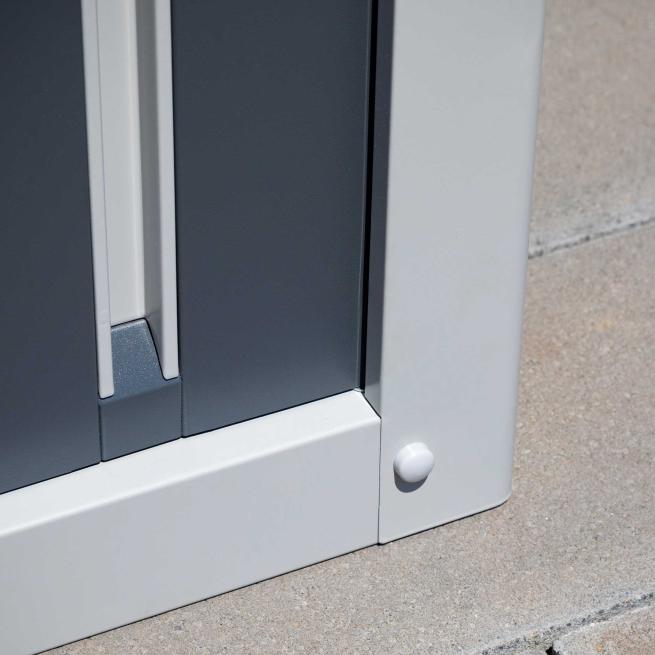 Im Guardian D63 bringen Sie Spielgeräte und alles, was Sie für Ihren Außenbereich benötigen, sicher unter. Der Metallschrank ist aus aluminiumzink-beschichtetem Stahl hergestellt und daher sehr robust, langlebig und witterungsbeständig. Er schützt seinen Inhalt optimal und trotzt zuverlässig Wind und Wetter. Auch heftiger Schneefall macht dem Guardian nichts aus: Das Dach trägt bis zu 100 kg Schneelast pro m² und bringt Ihre Spielgeräte zuverlässig durch den Winter. Der integrierte und stabile Fußboden mit einer maximalen Tragfähigkeit von 200 kg pro m² macht den Schrank sehr belastbar.