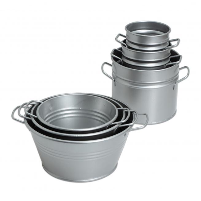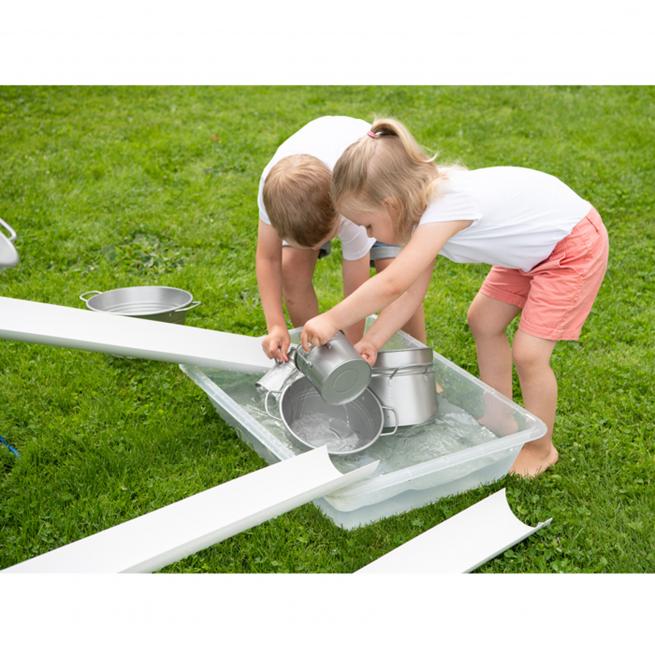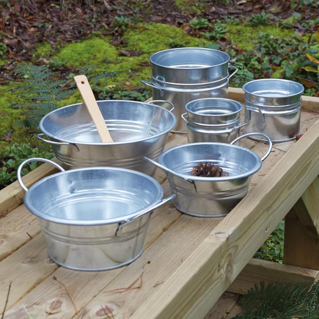 Die 6 unterschiedlich großen Schüsseln und Kannen aus Metall nutzen Ihre Kinder sowohl drinnen als auch draußen. Das Set hat keine scharfen Kanten und ist besonders robust. Dank Extrabeschichtung sind die Schüsseln und Kannen besonders widerstandsfähig und langlebig. Drinnen sortieren und bewahren die Kinder alle möglichen Schätze in den unterschiedlichen Gefäßen auf oder nutzen sie in der Kinderküche oder im Kinderkaufladen. Draußen ist das Set ein super Helfer beim Matschen und Spielen mit Wasser oder bei Schwimm- und Sink-Experimenten. Auch Sand, Steine und Gras lassen sich in den Schüsseln super mischen.