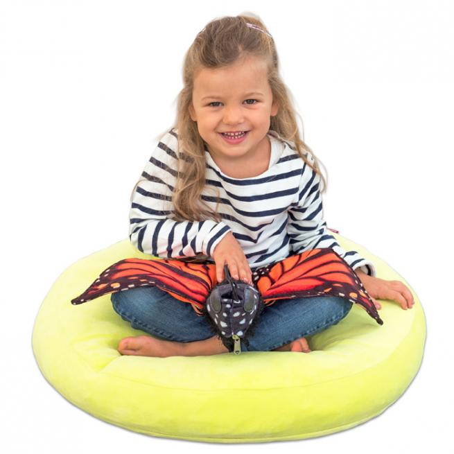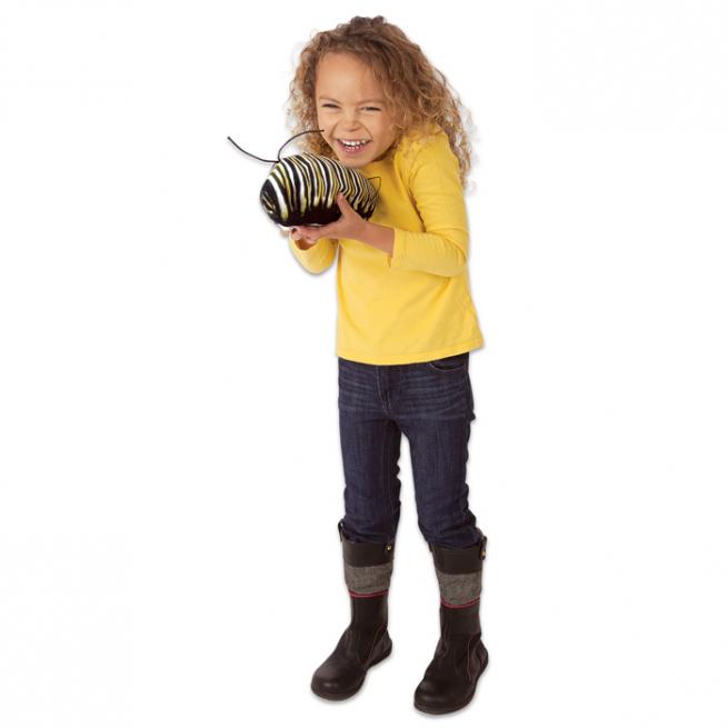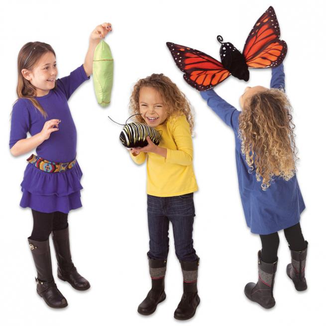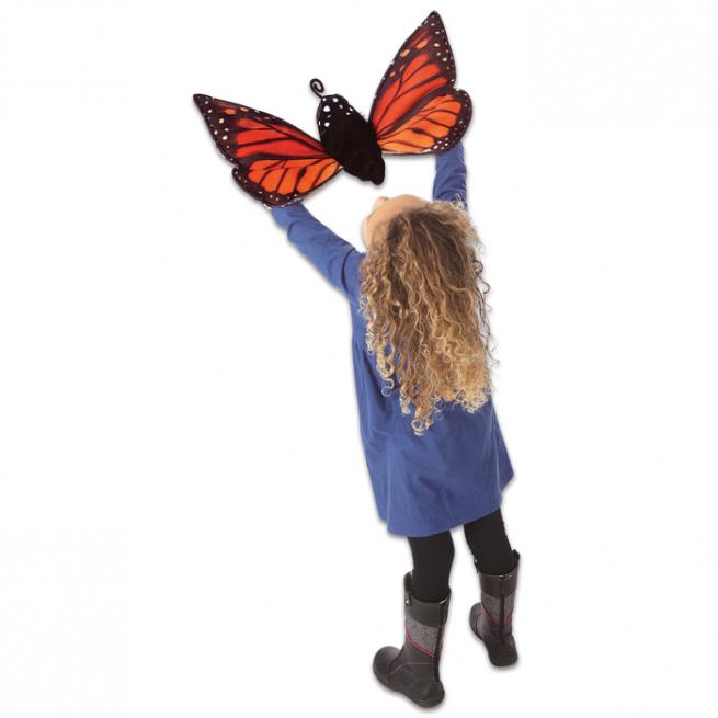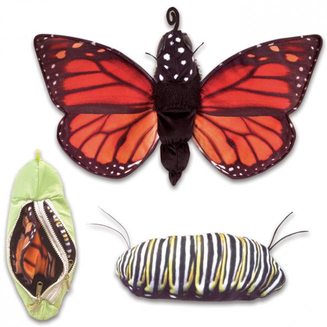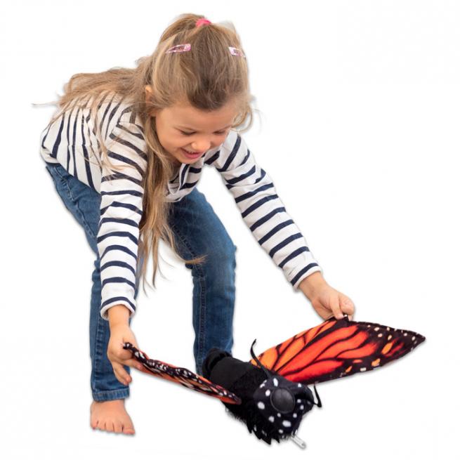 Wie die Metamorphose von der Raupe über die Puppe bis zum Schmetterling abläuft, erklären Sie Ihren Kindern anschaulich mit der Wendepuppe. Wenn der Monarchfalter sich entpuppt hat, lassen Sie ihn fliegen, indem Sie Ihre Hände in die Flügel stecken. Ab 3 Jahren.