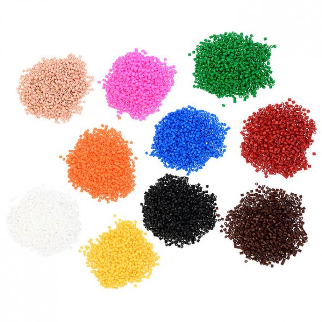 Je 1100 Midi-Bügelperlen in 10 verschiedenen Farben: Weiß, Haut, Gelb, Orange, Rot, Rosa, Grün, Blau, Braun und Schwarz