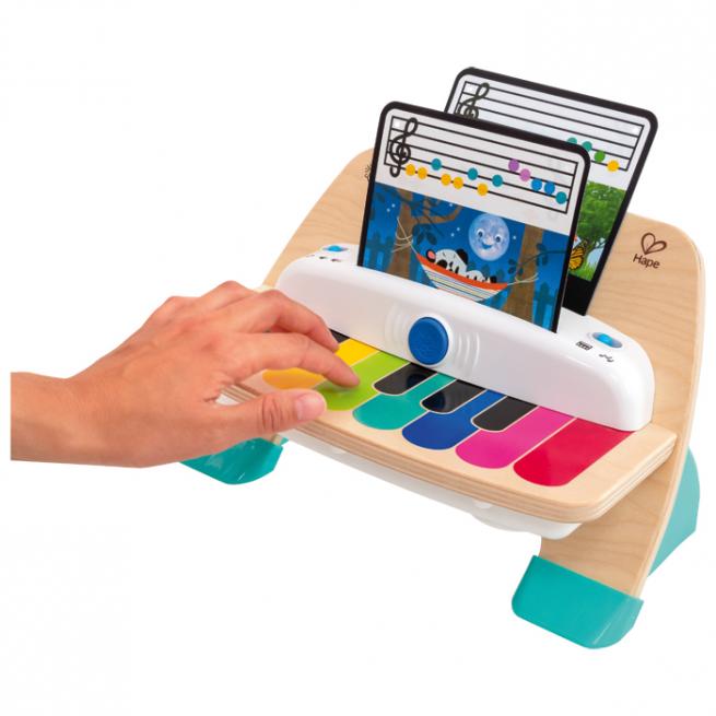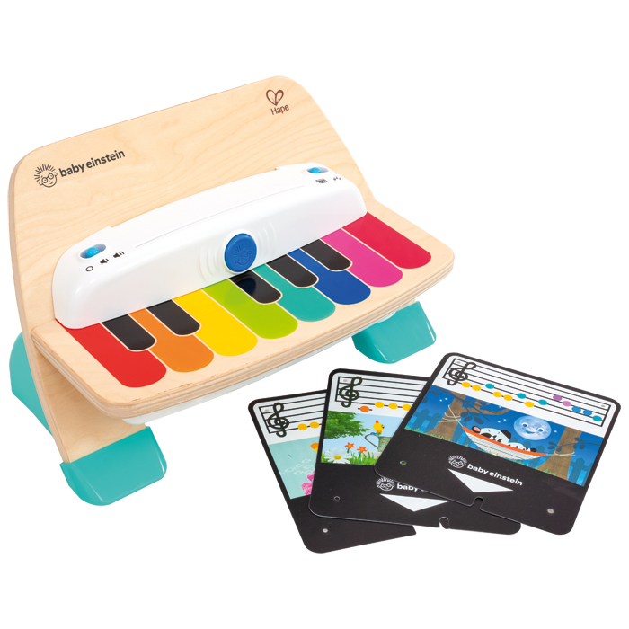 Auf dem Mini-Klavier erzeugen Kinder ab 12 Monaten erste eigene Klänge, indem sie die bunten Tasten in Boomwhackerfarben auf der Holzplatte berühren. Erste Klangabfolgen spielen die Kleinen mit Ihrer Hilfe und den beiliegenden 3 Notenblättern. Diese sind beidseitig mit Noten in Boomwhackerfarben bedruckt. Der Klaviersound ist in 8 Töne von c1 bis c2 unterteilt. Mit Lautstärkenregelung, 2 Spielmodi und 3 AA Batterien enthalten.