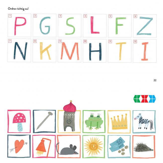 Der zweite Teil enthält Lesespiele zur akustischen Differenzierung der Anlaute, bei denen die Anfangsbuchstaben der Wörter mit den entsprechenden Abbildungen verknüpft werden müssen. Das Heft fördert das Interesse der Kinder am Lesenlernen und stärkt gleichzeitig wichtige visuelle Wahrnehmungsfunktionen. Dadurch wirkt es sich nicht nur positiv auf das Lesenlernen aus, sondern auch auf die gesamte Lernfähigkeit und Lernbereitschaft des Kindes.
