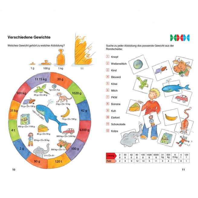 Das Verstehen dieses Ablaufs legt den Grundstein für das Verständnis weiterer angewandter Mathematik. Das breite, differenzierte und motivierende Übungsangebot wurde aus für die Kinder interessanten und verständlichen Themen gewählt. Vom mündlichen Rechnen bis 100 steigern sich die Anforderungen über den Zahlenraum bis 100.000 zu schriftlichen Rechenoperationen.