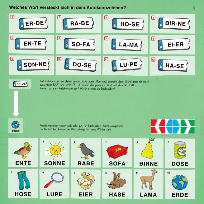 Erste Buchstabenkenntnisse - die wichtigsten Konsonanten und die Vokale als Großbuchstaben - werden durch das Heraushören der Anfangslaute vermittelt. In dieser Lernstufe ist darauf zu achten, dass die Buchstaben immer nur mit dem Lautwert zu benennen sind (z.B.: \'fff...\'; statt \'ef\';!). Übungen zum Heraushören von langen und kurzen Vokalen und Doppellauten/Zwielauten (au, ei, eu) runden diese Vorübungen zum Lesenlernen ab.
