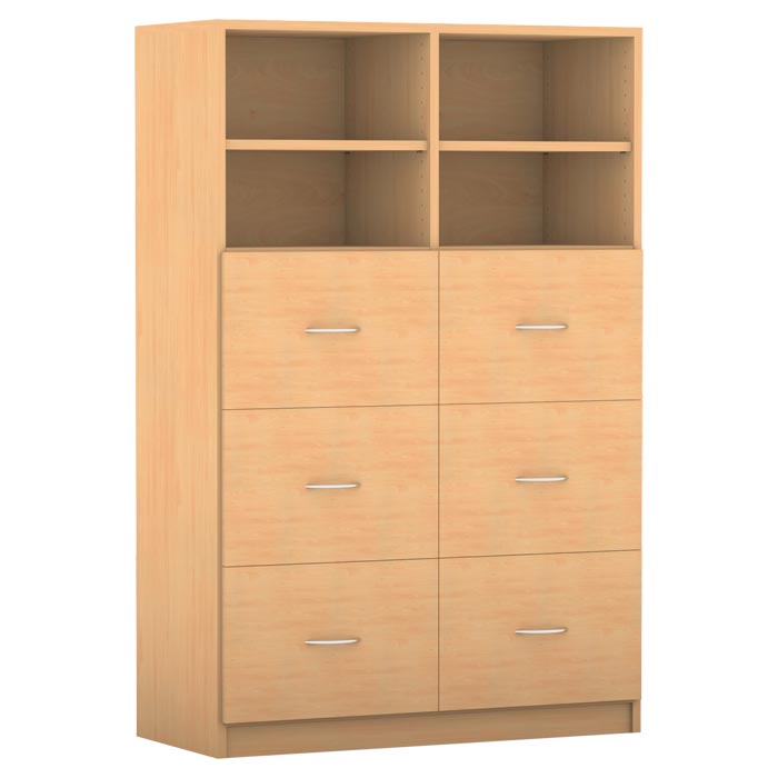 Funktionale Ordnung mit Übersicht. – diese praktischen Ordnungshelfer nutzen Sie dank der Sichtrückwand auch als Raumteiler. Die Rückwand ist 8 mm stark und sorgt für gute Stabilität. Die Melaminharzbeschichtung hält den Belastungen des Schulalltags spielend stand.