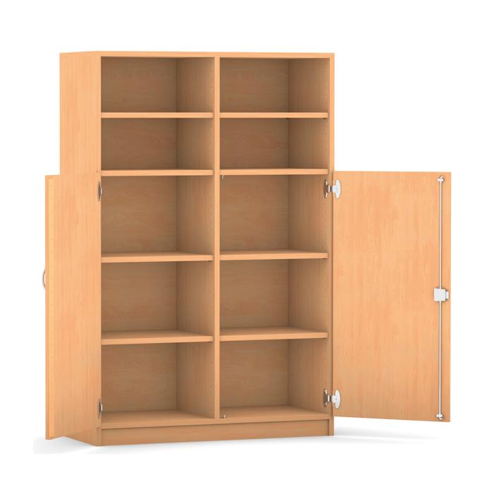 Aufgrund ihrer Höhe und der Sichtrückwand eignen sich die mittelhohen Regale und Schränke auch hervorragend als Raumteiler. Die besonders stabile Rückwand ist 8 mm stark.